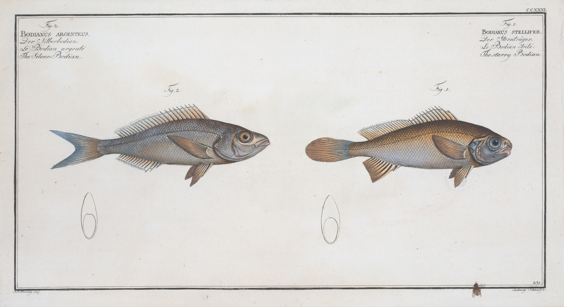 1. Bodianus stellifer, The starry Bodian; 2. Bodianus Argenteus, The Silver Bodian. by Marcus Elieser Bloch printed on a Sweatshirt