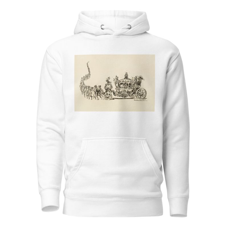 A long line of men in suits and top hats pull an ornate carriage by William Henry Walker printed on a Hoodie