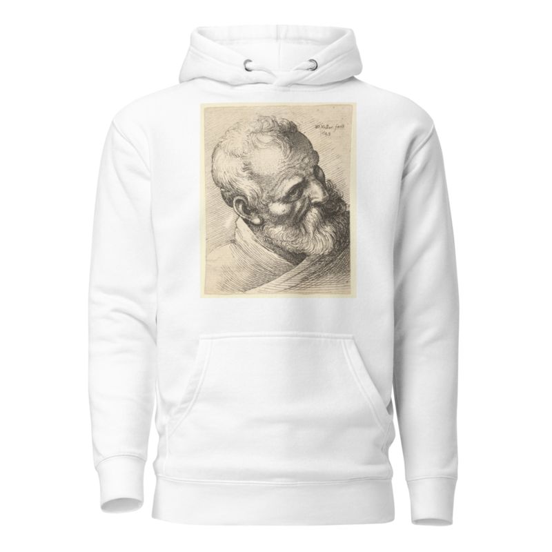 Bearded old man with a tilted head by Wenceslaus Hollar printed on a Hoodie