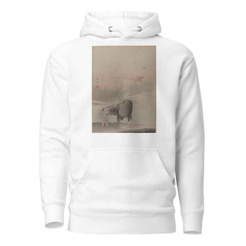 Boy with Cow at the River’s Edge by Hashimoto Gahō printed on a Hoodie