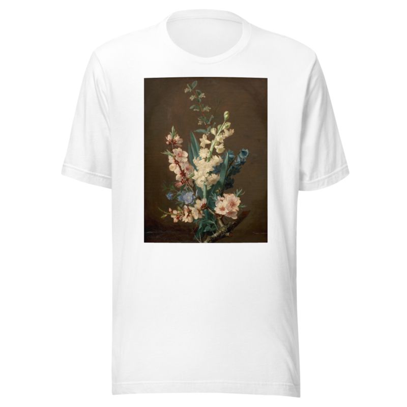 Branche de pommier et pieds d’alouettes, avec un vol d’abeille by Jean-Baptiste Gallet printed on a T-Shirt