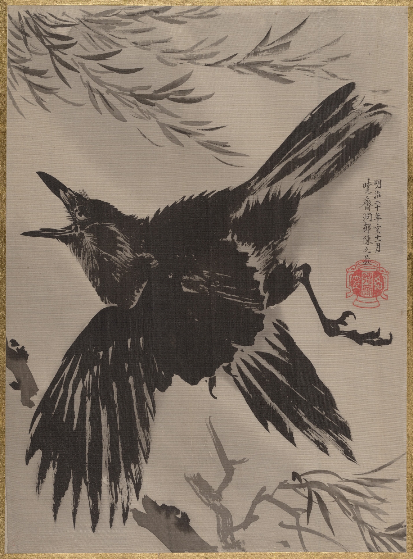 Crow and Willow Tree by Kawanabe Kyōsai printed on a T-Shirt