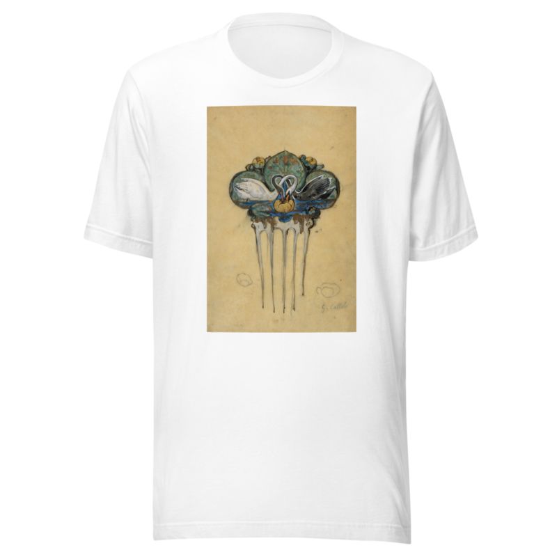 Dessin préparatoire pour un peigne orné de cygnes et de nénuphars by Georges Callot printed on a T-Shirt