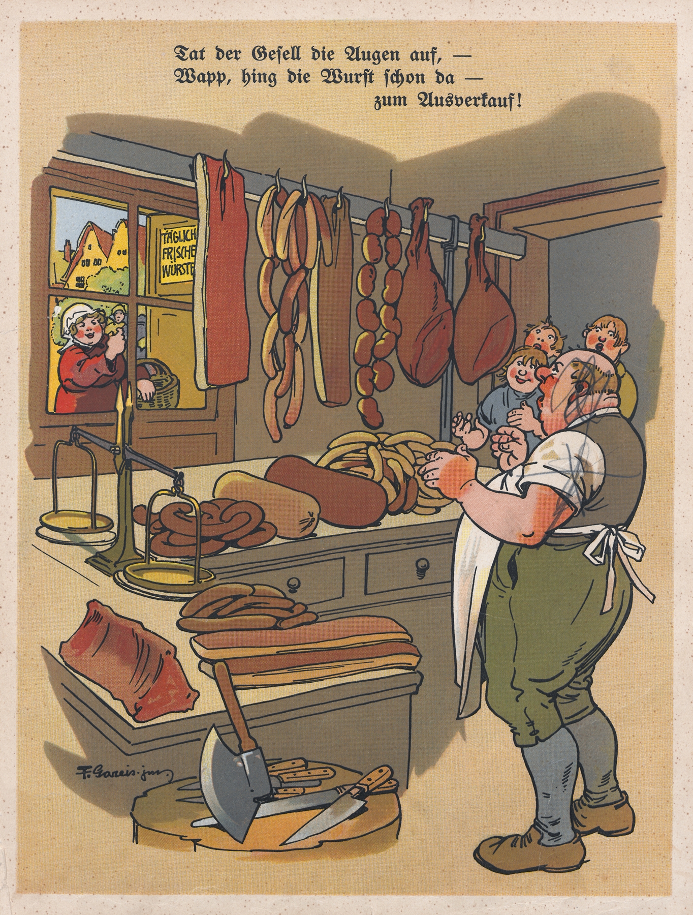 Fritz Gareis was an Austro-Hungarian artist and cartoonist for the left-wing Vienna satirical magazine Götz von Berlichingen. He drew a comic titled ‘Bilderbogen des kleinen Lebens.’ His father of the same name (1845–1903) was also an artist.
