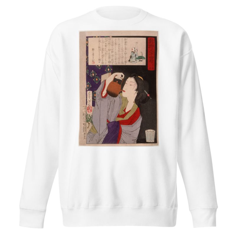 Geisha Drinking from Sake Kettle at 2;00 a.m. by Tsukioka Yoshitoshi printed on a Sweatshirt