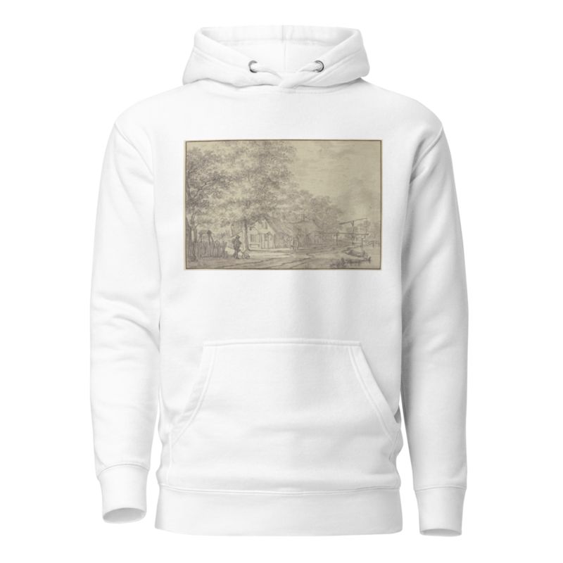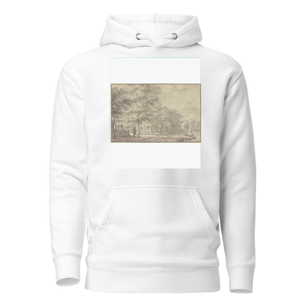 Hütten unter Bäumen, dabei eine Wasserhebemaschine by Jacob Cats printed on a Hoodie