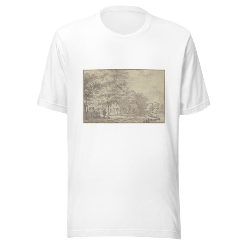 Hütten unter Bäumen, dabei eine Wasserhebemaschine by Jacob Cats printed on a T-Shirt