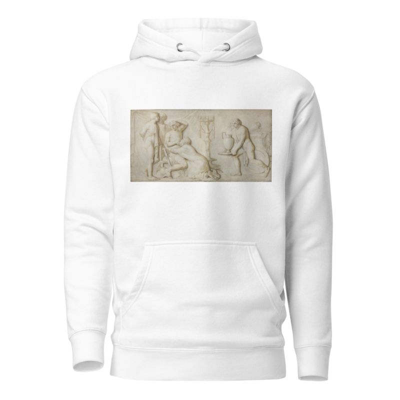 King Priam Pleading with Achilles for the Corpse of Hector by Nicolai Abildgaard printed on a Hoodie