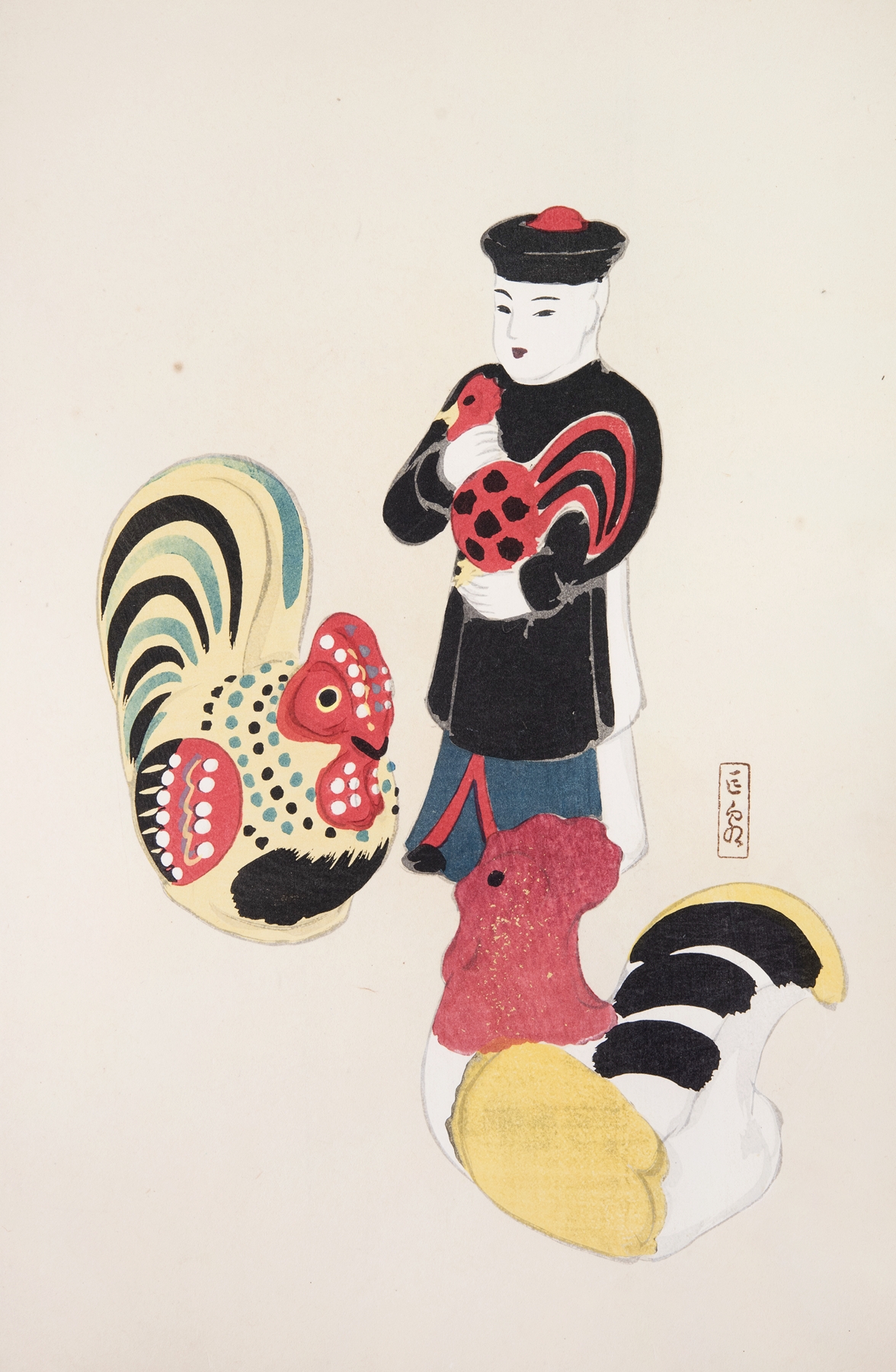 Local toy painter Kawasaki Kyosen (1877-1942) was an artist who worked during the Meiji and Showa periods drawing pictures of traditional toys he found in localities throughout Japan. Kyosen left 52 Gangucho sketchbooks that contain pictures of more than 5,000 different types of objects including not only local traditional toys but also lucky charms and products specific to localities.
