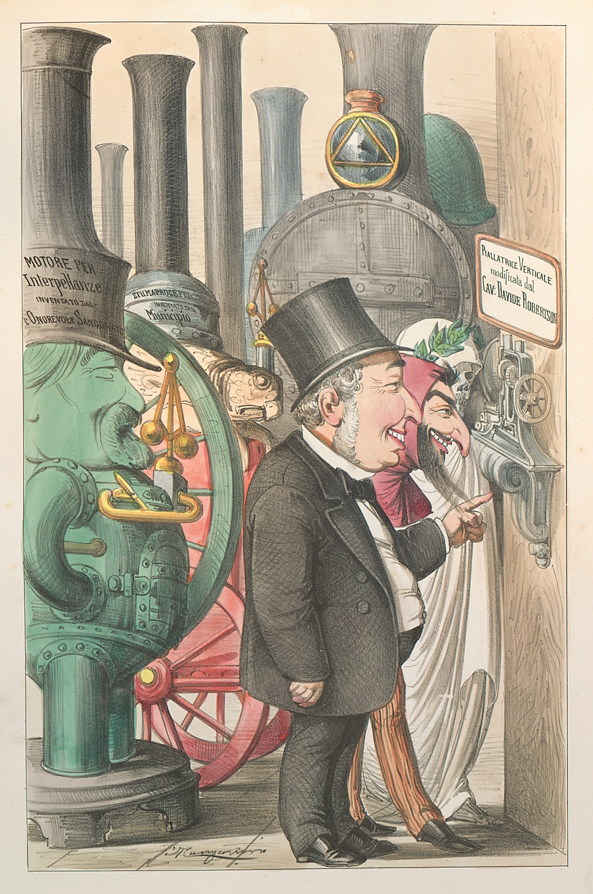 Following the General, Manganaro participated in numerous feats of arms and was also wounded, obtaining a medal. Taking leave of the Mobile National Guards, Noah’s Ark was hired as a caricaturist editor in the newspaper that became very popular. Manganaro then directed another newspaper, The Last Judgment and finally landed at the Stenterello. He was considered to be on a par with the two other leading caricaturists of his era, namely Errico Colonna and Melchiorre Delfico. In 1885, Manganaro obtained the chair of design at the Technical School Giambattista Della Porta in Naples.