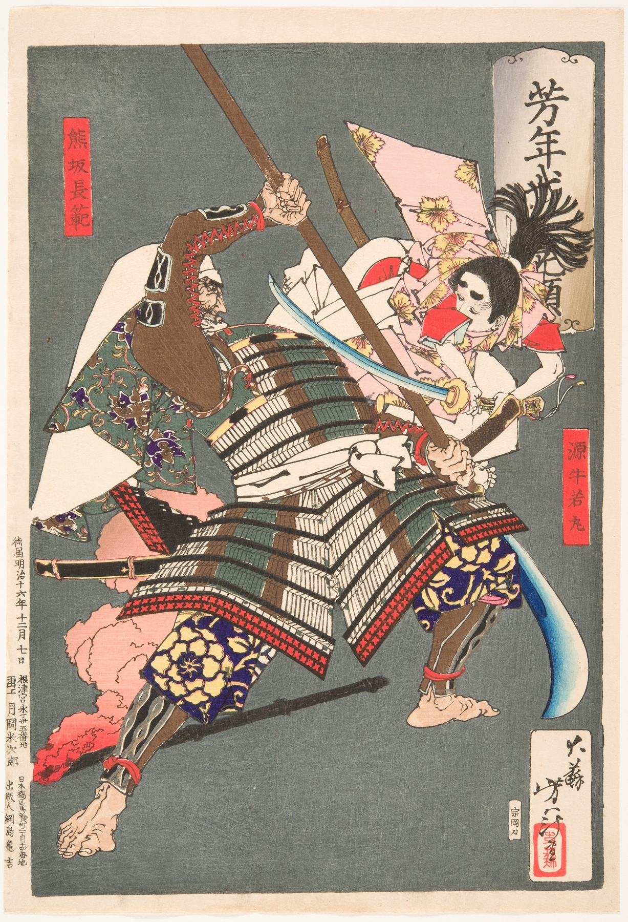 Minamoto no Ushiwakamaru Battling with the Brigand Kumasaka Chōhan by Tsukioka Yoshitoshi printed on a T-Shirt