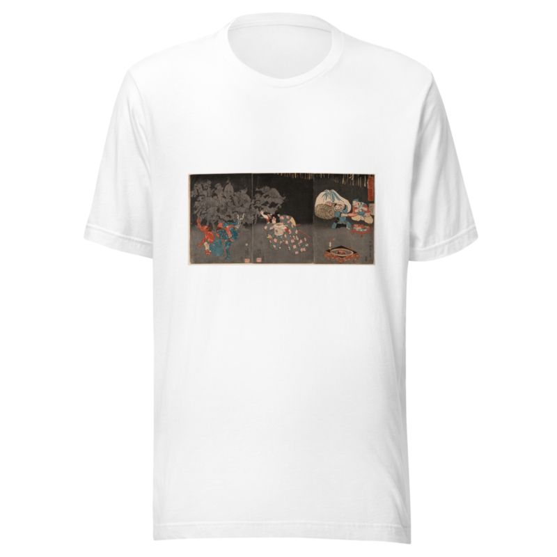 Momotarō Scattering Beans by Tsukioka Yoshitoshi printed on a T-Shirt