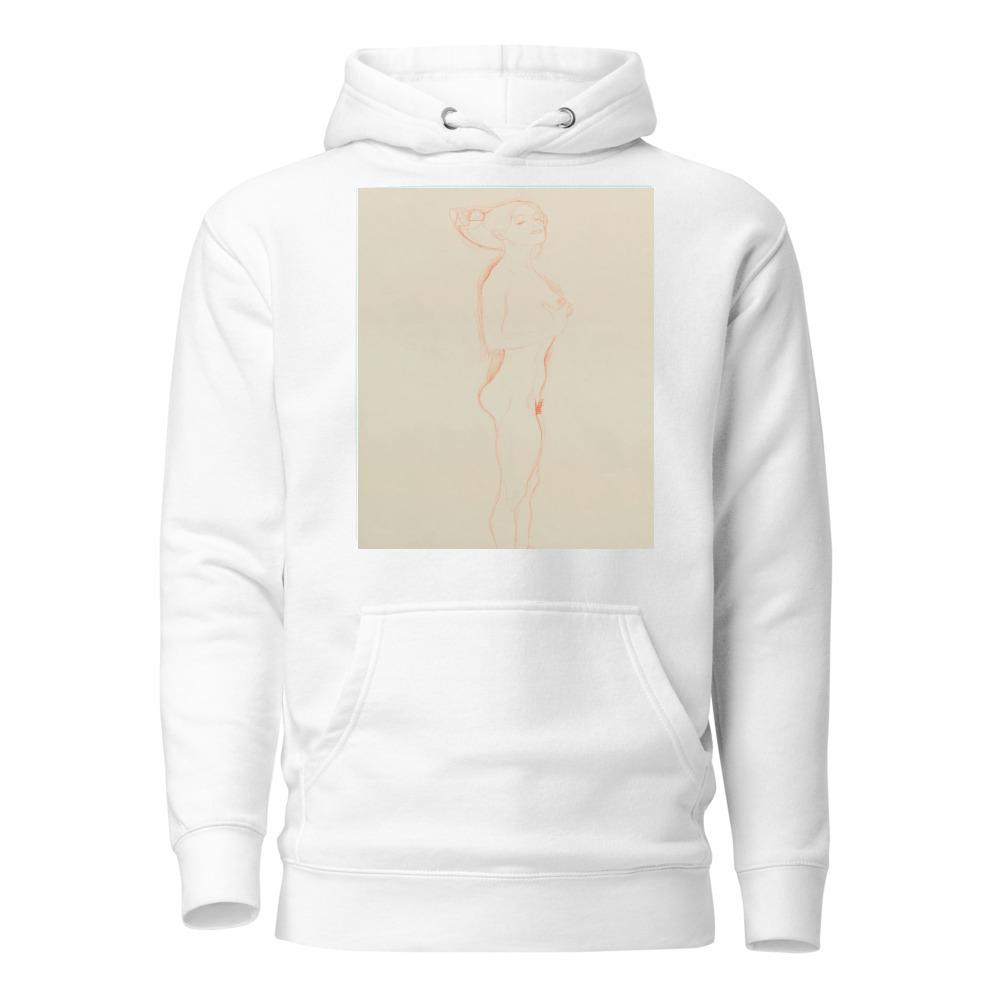 Naked Girl Standing, with Right Hand to Breast by Gustav Klimt printed on a Hoodie