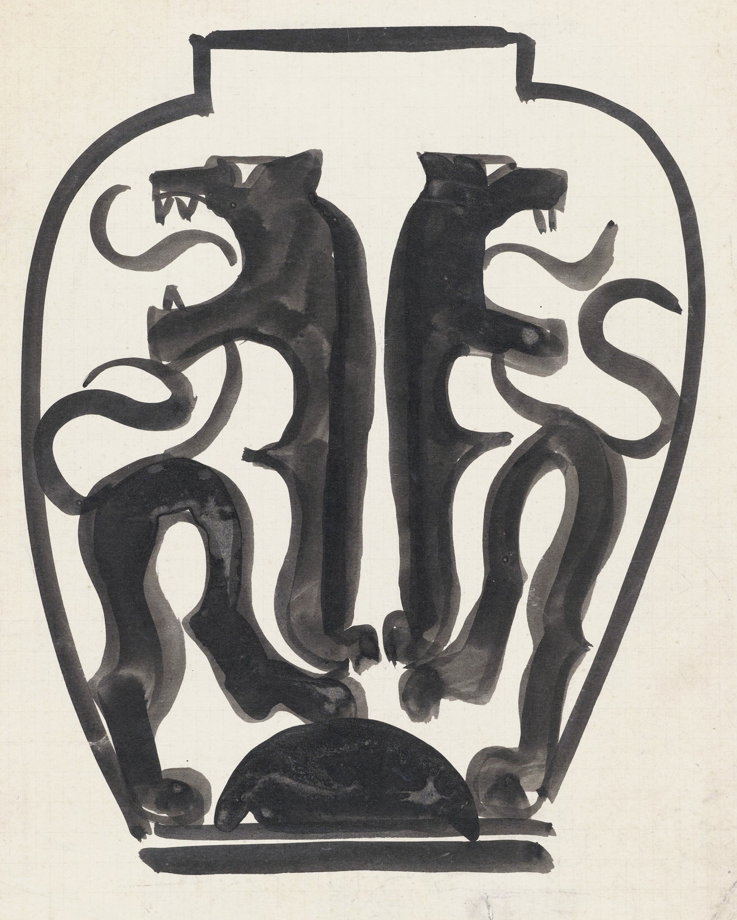 Ontwerp voor een vaas met leeuwenmotief by Carel Adolph Lion Cachet printed on a T-Shirt