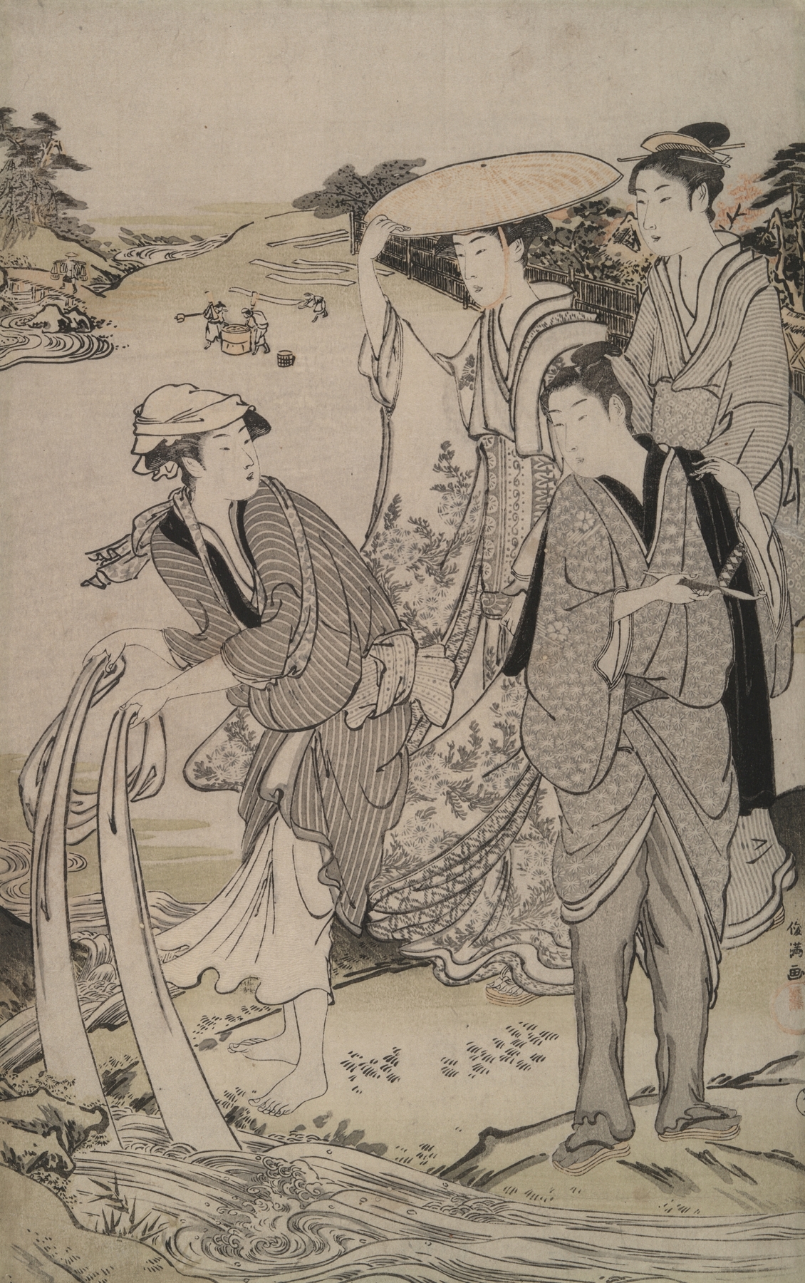 Shunman was a member of the poets’ clubs Bakuro-ren and Rokujuen, and became head of Bakuro-ren. He stopped making designing commercial prints in 1790 to focus on deluxe commissioned prints, and provided poetry for the prints of Hokusai, Utamaro, and Eishi.