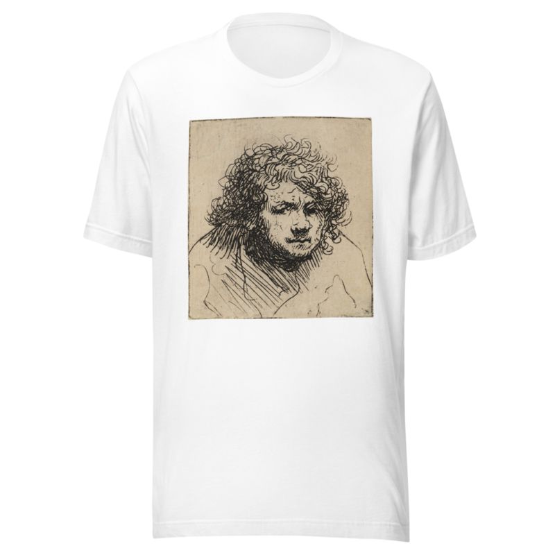 Self-Portrait: leaning forward Bust by Rembrandt van Rijn printed on a T-Shirt