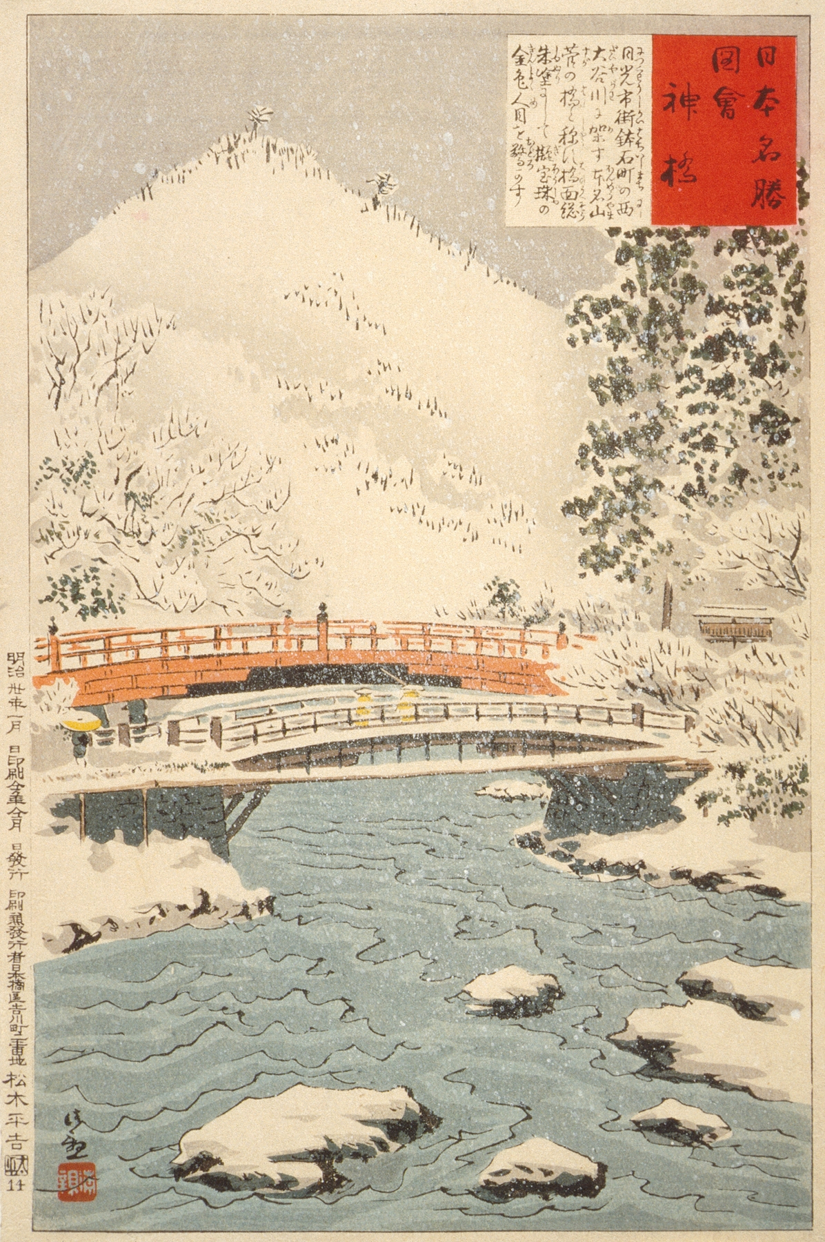 Shinkyō, Sacred Bridge at Nikkō by Kobayashi Kiyochika printed on a T-Shirt