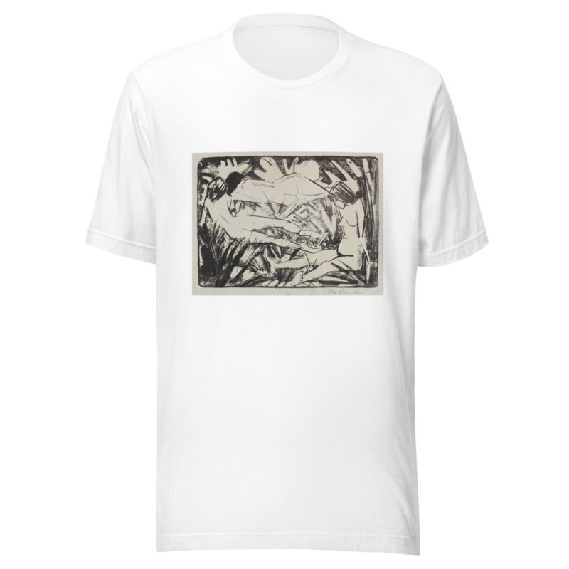 Sitzendes und zwei liegende Mädchen im Gras by Otto Mueller printed on a T-Shirt