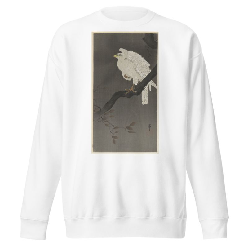 Snowy eagle on a tree branch by Ohara Koson printed on a Sweatshirt