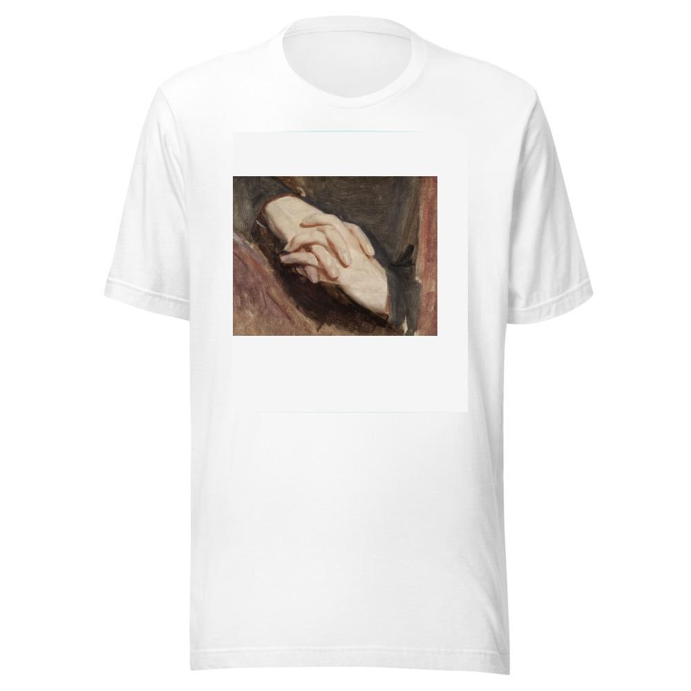 Study of the hands of Sigismund Augustus for the painting “Death of Barbara Radziwiłł” by Józef Simmler printed on a T-Shirt