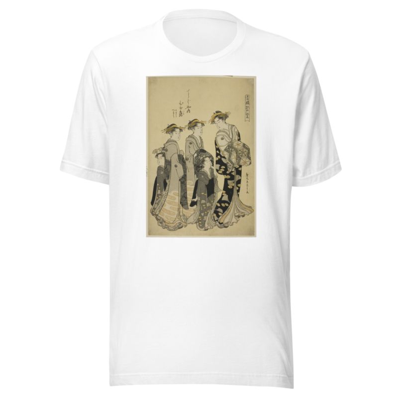 The Courtesan Hinazuru of the Chojiya with her Attendants, from the series ‘Edo Purple in the Pleasure Quarters by Chōbunsai Eishi printed on a T-Shirt