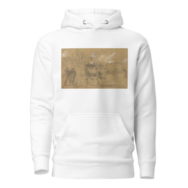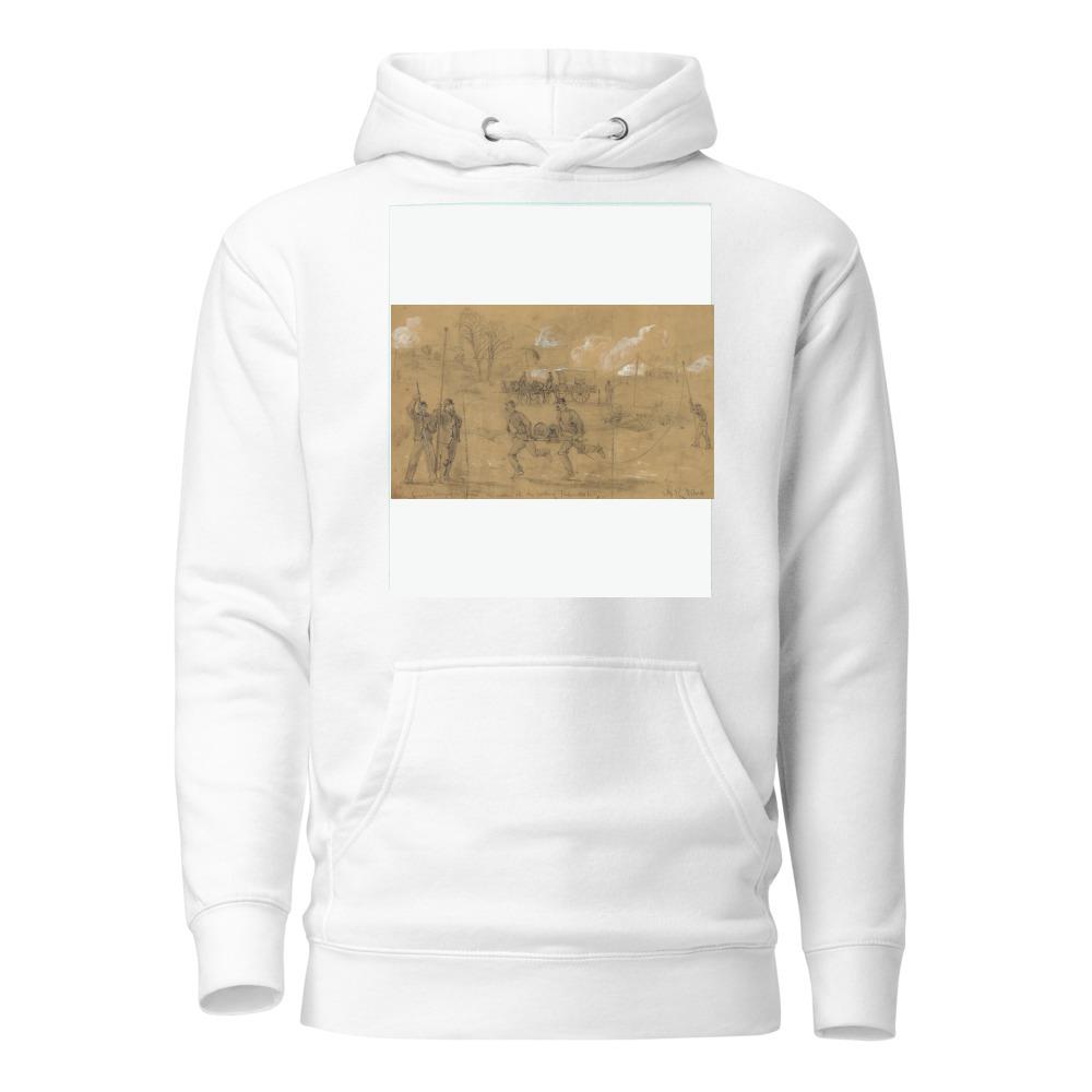 The signal telegraph train as used at the battle of Fredericksburg by Alfred Rudolph Waud printed on a Hoodie
