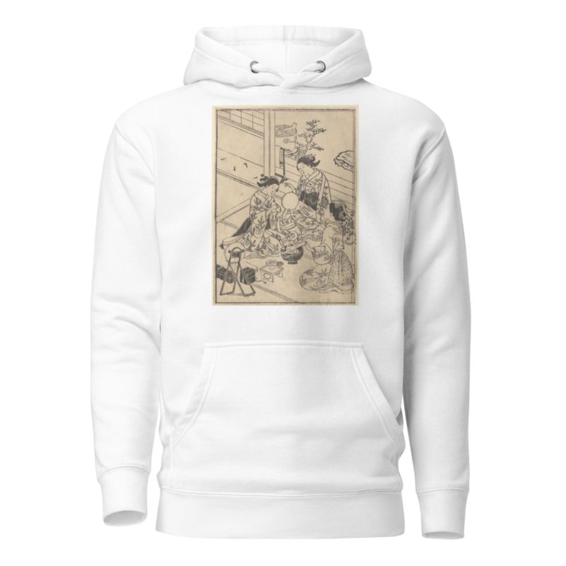 The Toilet—Three Women with Make-up Kit by Sukenobu Ishigawa printed on a Hoodie