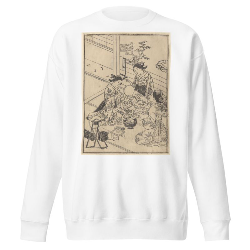 The Toilet—Three Women with Make-up Kit by Sukenobu Ishigawa printed on a Sweatshirt