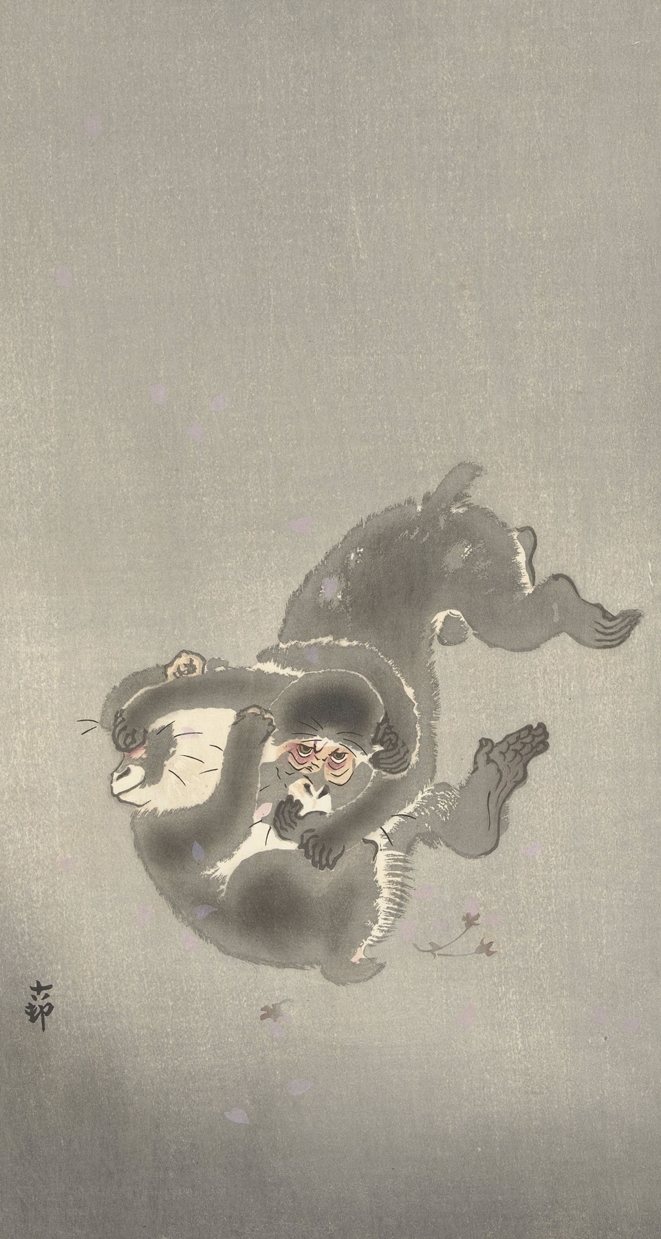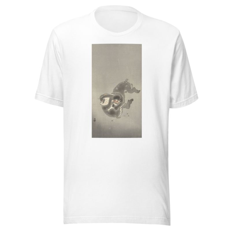 Two monkeys playing by Ohara Koson printed on a T-Shirt