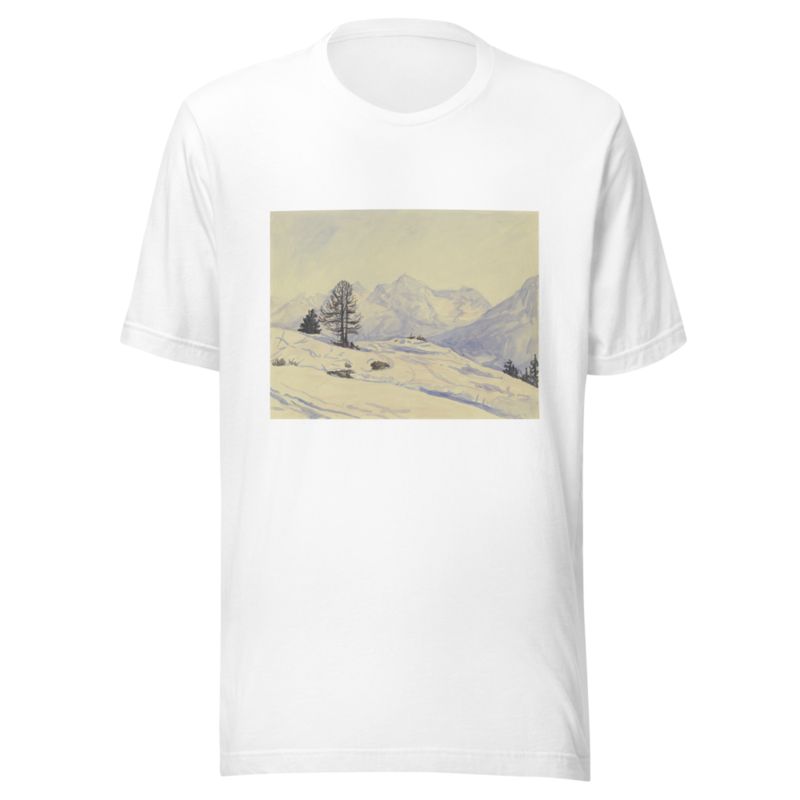 Winterlandschaft, Unterengadin by Jakob Nussbaum printed on a T-Shirt