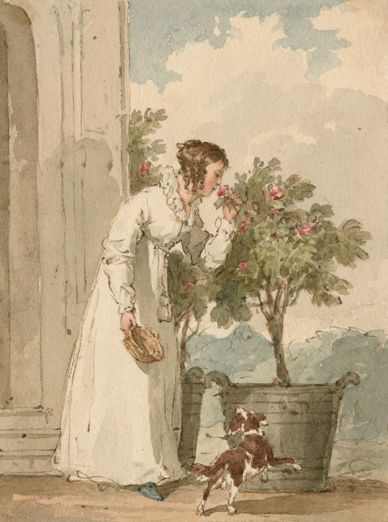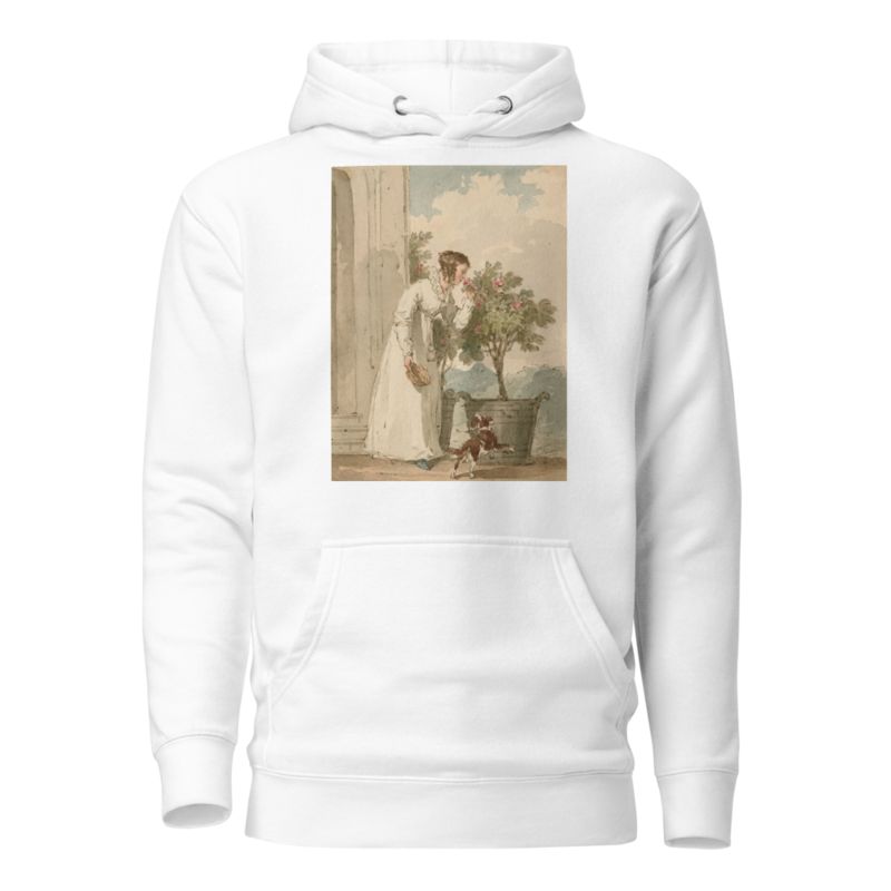 Woman smelling a rose by John Augustus Atkinson printed on a Hoodie